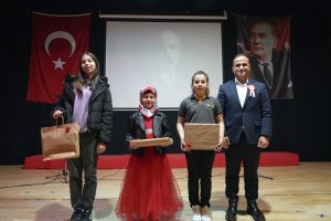 Programda “İstiklal Marşı’nı Güzel Okuma” yarışmasında derece alan öğrencilere ödül verildi. İlkokul kategorisinde Yalı İlkokulu’ndan Eliz Hira Gencer birinci, Manavpınarı İlkokulu’ndan Beyza Gül İkinci, Fatih Sultan Mehmet İlkokulu’ndan Ayşe Beyza Kurtipek üçüncü oldu. Ortaokul kategorisinde Karasu İmam Hatip Ortaokulu’ndan Zeynep Canseza Celep birinci, Gazi Ortaokulu’ndan Havva Ersöz ikinci, Sezi Eratik Ortaokulu’ndan Zeynep Esendemir üçüncü oldu.