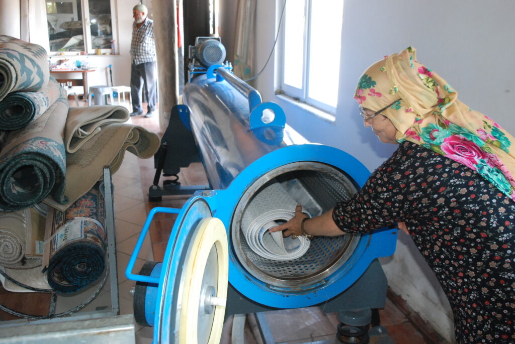 Sektöre nasıl girdiğini anlatan kadın girişimci Gül Güler, “Önceleri kendi evimde halılarımı yıkıyordum. Sonrasında bir iş yeri açmayı düşündüm. Önce küçük bir iş ile başladım, sonra büyüttüm. Şu anda 5 çalışanımız var. Çocuklarım da çalışıyor. Öncelerde fazla halı yıkayan yer yoktu. Şu anda sayısı bayağı arttı. Halıyı getirdikleri zaman önce silkeliyoruz sonra yıkamaya geçiyoruz. Yıkamadan sonra kurutmaya, oradan paketlemeye gidiyor. En son servise çıkıyor. İstiyorum ki bütün kadınlar bizim gibi çalışsınlar, ayaklarının üstünde dursunlar” ifadelerini kullandı.