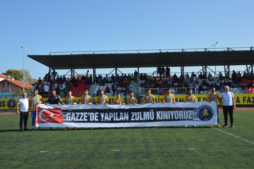 Ligin ilk haftasında kendi sahasında Taraklı karşısında beklenmedik bir beraberlik alan ve ilk puan kaybını yaşayan, geçtiğimiz haftayı da ligden çekilen rakibi sayesinde 3 puan ile kapatan Karasu Aziziyespor, ligdeki ilk galibiyetini Harmanlık karşısında aldı. Maça Gazze’de yaşanan katliamı protesto eden pankartla çıkan Kafkaslar, taraftardan da büyük destek gördü. Pazar günü oynanan müsabakanın ilk yarısında gol sesi çıkmadı ve iki takım da soyunma odasına golsüz gitti.
