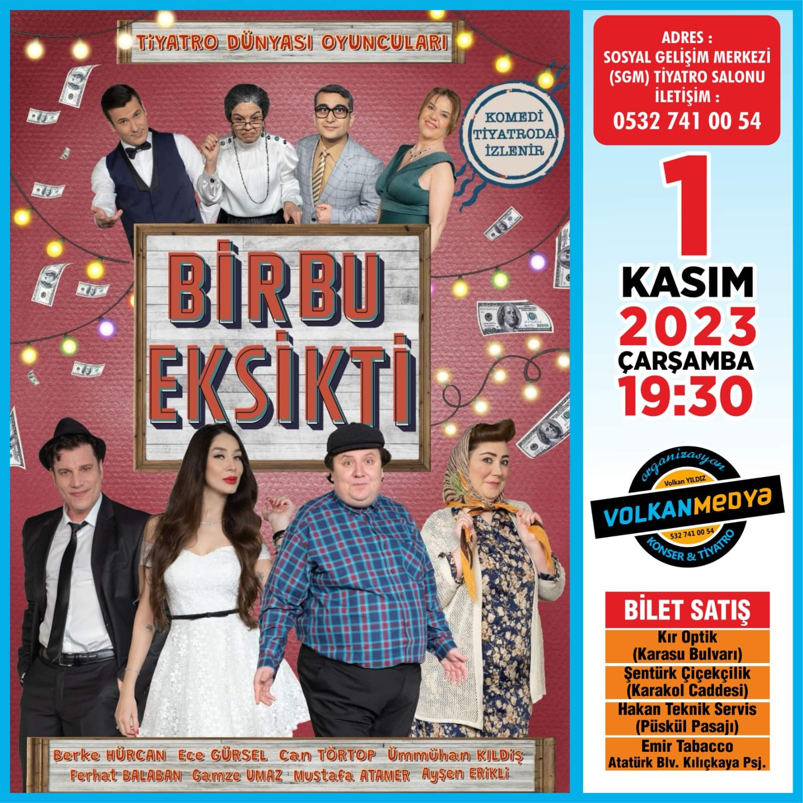 Organizatör Yıldız, “Şakir Sokullu’ya yüklü bir para vermek isteyen Atiye Hanım’ın tek şartı Şakir’in başka akrabası olmamasıdır. Gazete ilanını gören Şakir, dostu Ahmet Temiziş ile köşke parasını almaya gelir. Bildiği kadarıyla yaşayan başka akrabası yoktur. Ancak bir ikiz kardeşinin olduğunu fark etmesi uzun sürmeyecektir. Şakir’in ikizi Ali, evin genç kızı Suna’ya aşık olurken karısı Ayşe de Şakir’in peşindedir. Bir bu eksikti hem geleneksel tiyatromuzdan çok güzel tatlar sunarken hem de artık ekibin alışılmış tempolu ve eğlenceli yorumuyla seyirciye bol kahkahalı bir oyun vaad ediyor. Biletler, Kır Optik(Karasu Bulvarı), Şentürk Çiçekçilik (Karakol Caddesi), Hakan Teknik Servis (püskül pasajı), Emir Tabacco Atatürk Bulvarı Kılıçkaya pasajından temin edilebilir” ifadelerini kullandı.
