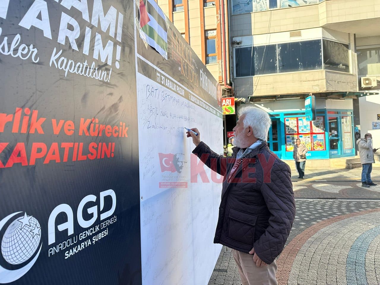 Anadolu Gençlik Derneği Karasu İlçe Temsilciliği tarafından Amerika ve İsrail’in İncirlik ve Kürecik’teki üslerinin kapatılmasına yönelik Karasu Atatürk Bulvarı’nda imza kampanyası düzenlendi. Düzenlenen programda Anadolu Gençlik Derneği Karasu İlçe Temsilciliği Hanım Kolları tarafından aşure dağıtıldı. Etkinlikte oluşturulan fikir duvarına yoğun ilgi oldu. Vatandaşlar fikir duvarına duygularını yazdı.