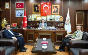 Sakarya Seyyar Giyim Eşyası Satıcıları Esnaf Odası Başkanı Yekta Tepe ve Karasu Esnaf ve Sanatkarlar Odası Başkanı Cihan Emre, Karasu Belediye Başkanı İshak Sarı’yı makamında ziyaret etti.