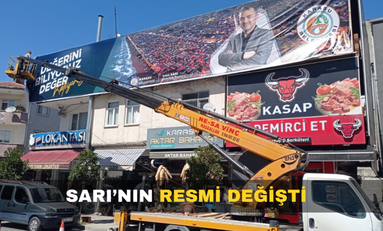Karasu Karakol Caddesi’nde bulunan binanın üst katına asıla Belediye Başkanı İshak Sarı’nın resminin bulunduğu branda güneşten solmuştu. Yıllardan bu yana aynı yerde duran brandanın yerine cumartesi günü yenisi asılsı. Daha önce binanın sadece güney cephesine asılan branda bu kez batı cephesine de yerleştirildi. Karasu’nun sahil bandından itibaren havadan çekilmiş görselinin yanına İshak Sarı’nın resmi yerleştirilen pankartta “Değerini biliyoruz, değer katıyoruz” notu paylaşıldı. Binanın iki cephesine de aynı görsel asıldı.
