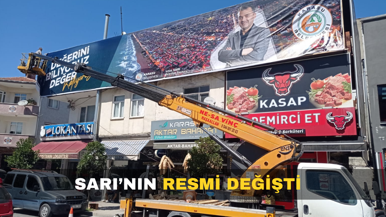 Karasu Karakol Caddesi’nde bulunan binanın üst katına asıla Belediye Başkanı İshak Sarı’nın resminin bulunduğu branda güneşten solmuştu. Yıllardan bu yana aynı yerde duran brandanın yerine cumartesi günü yenisi asılsı. Daha önce binanın sadece güney cephesine asılan branda bu kez batı cephesine de yerleştirildi. Karasu’nun sahil bandından itibaren havadan çekilmiş görselinin yanına İshak Sarı’nın resmi yerleştirilen pankartta “Değerini biliyoruz, değer katıyoruz” notu paylaşıldı. Binanın iki cephesine de aynı görsel asıldı.