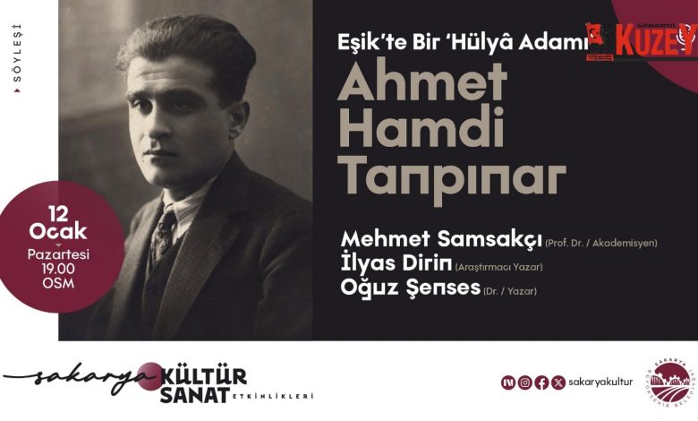 Sakarya Büyükşehir Belediyesi’nin Ocak ayı kültür sanat etkinlikleri kapsamında “Eşik’te Bir Hülya Adamı” başlıklı söyleşiyle Ahmet Hamdi Tanpınar’ın edebi mirası sanatseverlerle buluşturuluyor.