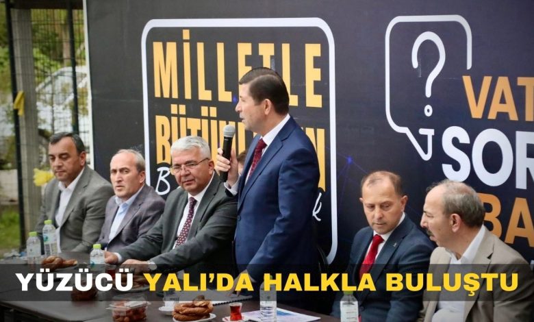 Toplantıda konuşan Belediye Başkanı Turan Yüzücü göreve geldikten sonraki yaklaşık bir yıllık dönemde Yalı Mahallesi’nde yol, sıcak asfalt, çevre düzenleme, aydınlatma başta olmak üzere bir çok çalışmayı tamamladıklarını, kalan cadde ve sokakların ise belirli program dahilinde yapılmaya devam edileceğini söyledi. Vatandaşların sorun ve taleplerini de not alan başkan Yüzücü “’Vatandaş Soruyor, Başkan Cevaplıyor’ programımızın 4’üncüsünü Yalı Mahallemizde gerçekleştirdik. AK Parti İlçe Başkanımız İsmail Demir, başkan yardımcılarımız, meclis üyelerimiz, birim müdürlerimiz ve yönetim kurulu üyelerimizle birlikte mahalle sakinlerimizle buluştuk. Göreve geldiğimiz günden bu yana yaptığımız çalışmaları anlatarak hemşerilerimizin görüş ve önerilerini dinledik. Yağmur yağışına rağmen bizleri sabırla dinleyen Yalı Mahalleli hemşerilerimize ve misafirperverliği dolayısıyla Muhtarımız Murat Özdemir kardeşime teşekkür ediyorum. Allah, birliğimizi daim eylesin” Şeklinde konuştu.